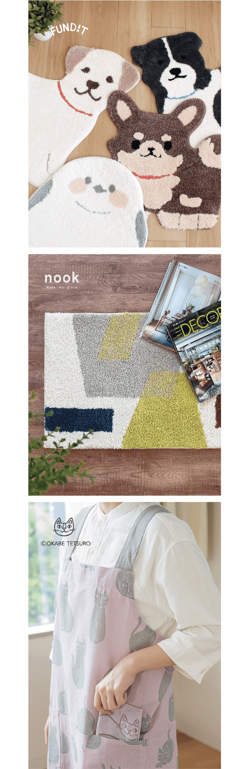 また、「自分とものの居場所をつくる」ヌックマットやねこ画家おかべてつろう氏とのコラボ商品も展示いたします。